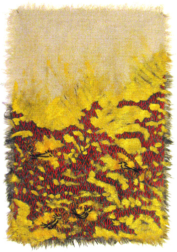 moku hanga woodcut, acrylic, embroidery on linen, 2009