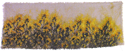 moku hanga woodcut, acrylic, embroidery on linen, 2009