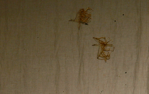 woodcut, gold leaf, plant dye, embroidery, beeswax on linen, 27"x180", 2008