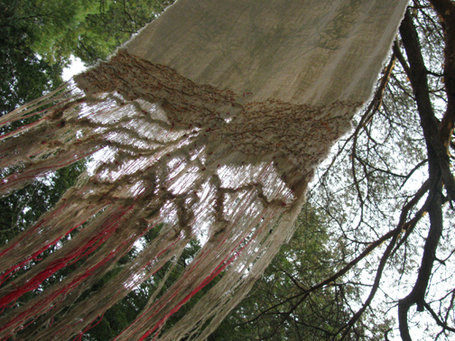 woodcut, gold leaf, plant dye, embroidery, beeswax on linen, 27"x180", 2008